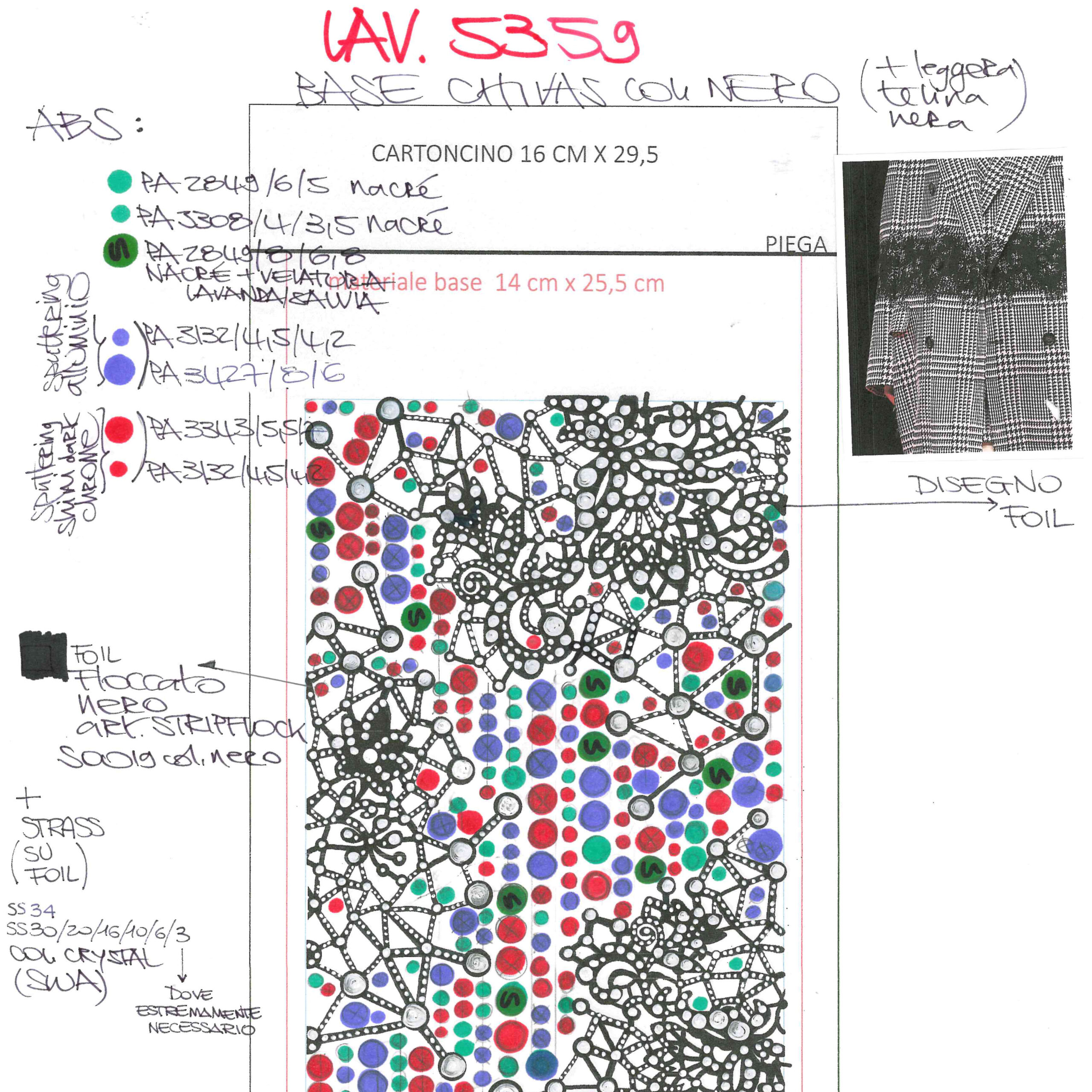 Proseguiamo ora il cammino per esplorare come l’ispirazione muta in disegno fino a divenire pannello e campione.